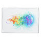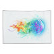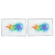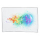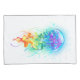 Água-viva grande, iridescente, desenhada artisticamente, brilhante, com longos tentáculos em branco, pintada sobre fundo de aquarela multicolorido. Água-viva arco-íris.