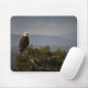 Águia Bald Madura sentada em uma Árvore Fir com a Ilha Vancouver ao fundo.