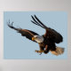 Capture o poder e a graça inspiradores da natureza com esta poster de uma águia descendo no ar médio. Os olhos afiados e piercing da águia e as asas generalizadas criam uma cena dinâmica e dramática, perfeita para entusiastas da vida selvagem e amantes da beleza natural. Ideal para casas, escritórios ou espaços educacionais, esta trabalho de arte traz a natureza para o seu dia a dia, lembrando-vos da força e liberdade que a águia simboliza.