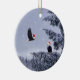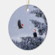 Águias caídas com chapéus de Papai Noel em uma floresta com neve em um Enfeites de natal cerâmico. Perfeito para amantes da natureza!