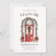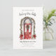 Aguinaldo de anúncio de mudança de Decking New Halls. Porta em aquarela vermelha festiva com decoração de Natal.