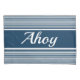 Design de texto Ahoy com decoração de listras brancas e azuis marinhos