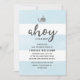 Chá de fraldas moderno com riscas ousadas e baleia prateada. Perfeito para um garoto chá de fraldas marinho.