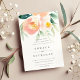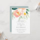 O convite de casamento floral moderno em aquarelas pastel apresenta um buquê de sangue pintado em pêssego pálido e verde de menta, com seus detalhes de casamento embaixo de cinzas moles.
