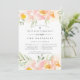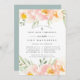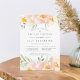 O convite floral para a Elegante aquarela para a primeira comunhão sagrada da sua filha enquadra sua cerimônia religiosa e detalhes de festas com uma borda de flores pastel em pêssego claro e rosa claro, com folhagem verde-menta. Uma pequena cruz completa a design.