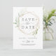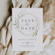 Este verdinho rico que salva a data do anúncio é perfeito para um casamento moderno. O elegante design botânico apresenta uma aquarela clara e arejada, eucalipto, acentuado com folhas de brilho de ouro branco.