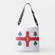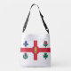 Saco com a bandeira de Montreal, a cidade mais populosa da província de Quebec, Canadá. Uma bandeira branca com uma cruz vermelha, um pinho branco, uma Fleur-de-lys azul, uma rosa vermelha de Lancaster, uma shamrock, e um caroço