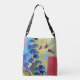 Esta bolsa de tote de corpo cruzado apresenta o desenho abstrato "Outro Mundo". Pássaros voam para árvores azuis em montanhas verdes e douradas, mostrando seu estilo artístico. Dentro é tão inteligente com três bolsos interiores!