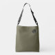 Crossbody Bag verde militar com sinal de paz preto e o logotipo "PEACE IS What WE NED" e Y-NOT-ME no verso. A longo prazo, a justiça e a igualdade são o que traz a paz. Parece que quanto mais bilionários há, menos igualdade há. Isso é apenas uma coincidência?