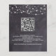 Convide amigos e família para o seu casamento com esses cartazes elegantes, mas rústicos, e cartazes de cartazes de casamento. Estas ardósias ardósias em um convite de casamento apresentam elegantes luzes brancas de cordas em design de tabuleiro de cinza com o código qr do site de casamento para RSVPs fáceis. Personalize esses convites de casamento de chalkboard com nomes, data de casamento e local. Veja nossa coleção de casamento para convites de casamento, álbuns de fotos de casamento, livros de hóspedes, presentes de festas e muito mais! COPYRIGHT © 2020 Judy Burrows, Black Dog Art - Todos Os Direitos Reservados. Ajuste Russo da Cadeia de Caracteres das Luzes QR Código Casamento