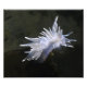 Um Alabaster Nudibranch/Fosco Nudibranch (Dirona albolineata) que se posiciona na borda de uma folha Kelp no sul da Colúmbia Britânica, Canadá.