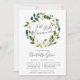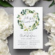 Os Elegantes convites florais de primeira comunhão sagrados apresentam uma coroa de rosas brancas de aquarelas e peônias com folhas e folhagem botânica verde-luxuosa, cercando a "primeira comunhão sagrada" em letra chic manuscrita. Personalize com seus primeiros detalhes de comunhão abaixo, incluindo espaço para cerimônia religiosa e celebração ou partido a seguir.