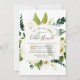 O convite elegante e moderno para chás de fraldas florais apresenta um fundo de rosas de marfim e peônias acentuadas com botânicos verdes e folhagem. Os detalhes do seu chá de fraldas estão sobrepostos em um elemento branco puro em letras escura e escura elegantes acentuadas com caligrafia de estilo manuscrito.