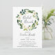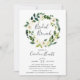 Os convites para brunch floral Elegantes apresentam uma coroa de rosas brancas e peonias de cor aquosa com folhas e folhagem botânica verde-luxuosa, cercando o "chá de panela" em letra chic manuscrita. Personalize com seus detalhes de brunch.