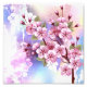 Articulação artificial, ramo de cor-de-rosa, cereja floresce sobre fundo picturesco, texturizado, pintado com tinta branca, rosa e azul. Pink Sakura
