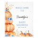 Chá de fraldas Rustic Blue Floral Little Pumpkin Saúda o Sinal de queda Doce o pequeno Sinal de chá de fraldas de abóbora do templo Sinal de boas-vindas para o bebê com abóboras empilhadas, flores azuis e folhagem de outono. Este pequeno sinal de boas-vindas ao chá de fraldas de abóbora é ideal para um chá de fraldas de outono.