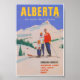 Alberta Canada Vintage Ski Poster com uma família de esquiadores neste poster de viagens retrô colorido.