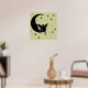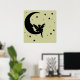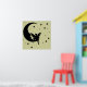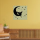 Uma silhueta de uma fada sentada na lua, cercada por estrelas. Sinta-se livre para mudar a cor de fundo para combinar melhor com a parede e decorar.
