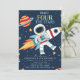 Se transforme em uma celebração fora deste mundo com este empolgante convite de aniversário do tema espacial "Atacar Quatro Estrelas"! Perfeito para o quarto aniversário de um jovem aventureiro, este divertido design apresenta um valente astronauta, um foguete vibrante, e um deslumbrante céu noturno cheio de estrelas e planetas. Seja o seu pequeno sonho de explorar o cosmos ou embarcar na sua próxima missão intergaláctica, este convite dá o tom para um aniversário que é verdadeiramente estelar. Personalize este convite para incluir todos os detalhes do seu partido e envie-o à família e aos amigos para uma aventura espacial inesquecível!