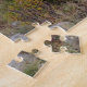 Este alce do touro parece impermeável aos espectadores no parque nacional de montanha rochosa. Trabalhe o quebra-cabeça. Pendure-o então em sua parede.