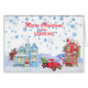 Mande um pouco de Vermont para seus amigos e família esta temporada Holiday, com este design de aquarelas bonitinho de uma vila de montanhas de neve. Incluídos na imagem estão casas coloridas, um boneco de neve, e um caminhão de coleta vermelho com uma árvore de Natal atrás. Flocos de neve azuis gelados caem do céu. O texto em vermelho no topo pode ser alterado para qualquer coisa que você quiser, assim como o texto no dentro. *Crédito de design de imagem para EphrazyDesign.
