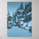 Um dia nevado na aldeia da montanha, com muitas casas e uma floresta ao fundo. Esta é uma arte gerada por IA.