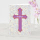 Minha arte original é apresentada neste lindo cartão, consistindo em um fundo rosa estilo vintage com uma cruz roxa lavanda ilustrada rústica na frente. As palavras 'Alegre-se!' estão na cruz e o interior do cartão diz "Que a sua Páscoa seja um dia santo e abençoado lembrando nosso Senhor. Feliz Páscoa!" para um lindo cartão de Páscoa de fé.