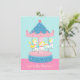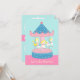 Convide seus convidados ao aniversário da sua menina com este cor-de-rosa bonito e a feliz azul vai convite de aniversário da casa. O carrossel minúsculo colorido tem os cavalos brancos, as estrelas e o céu. Doce e adorável para um circo ou um partido do tema do carnaval. Seus convidados das crianças serão excitados para receber o convite! Personalize facilmente com seus detalhes do partido.
