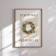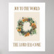 Elegante poster de Natal, com a frase "Joy to the World, the Lord Has Come" com uma pinecona aquarela e poinsettia cortada em ouro quente e tons verdes. Perfeito para arte de muro de férias e decoração em casa cristã.