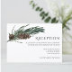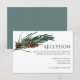 Lindos, elegantes e modernos cartões de recepção de casamento para a sua ocasião especial! O design combina com o resto da Coleção Christmas Joy. Perfeito para a alegre e festiva temporada de Natal de inverno! Um bordo de folhagem de folhas de pinheiro verde escuro em aquarela com um cone de pinheiro marrom emoldura o canto superior esquerdo dos detalhes do seu cartão de recepção de casamento, vire o cartão para revelar um padrão de fundo verde sage com neve de inverno. Personalize com os detalhes da sua recepção de casamento, incluindo horário, local e detalhes adicionais como estacionamento ou transporte.
