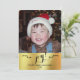Belo cartão de Natal contemporâneo para o minimalista. O cartão simplesmente diz "alegria!" Insira sua foto favorita, adicione seus nomes e o ano e você tem o cartão com fotos de feriado perfeito! O verso da placa é um padrão dourado listrado. A placa é mostrada com as bordas arredondadas, mas há várias outras que você pode escolher.