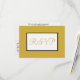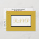Dourado fundo colorido na frente com RSVP gravado em script de cor dourada contra retângulo geométrico branco e preto. Personalize o lado de trás com a escolha da comida da parte receptora e outros detalhes. Nota sobre as alergias de comida na parte inferior (manter como está ou apagar). Design original de TamiraZDescartazes.