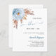 Para um duche de noiva moderno. Fundo branco. Decorado com uma rosa azul empoeirada, grama de pampas. Personalize e adicione um nome e detalhes da parte. Texto: Algo azul antes de mim. 1 folha = 1 chá de panela impresso borda a borda.