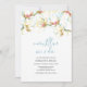 Este chá de panela floral apresenta o nome da noiva, definido com a palavra "Algo Azul antes de Eu Fazer" em uma tipografia de script manuscrita com na moda com detalhes de evento em uma serra de cinza de carvão clássico, se a letra for em um fundo branco nítido com uma camada superior de flores brancas de magnólia aquáticas. A carta de convite reverte para uma cor turquesa tropical complementar. Uma opção botânica, mas elegante, para festa de chá, almoço ou brunch e celebração de chás de panela em climas sulistas ou na Flórida. Para ver toda a suíte de Victoria Grigaliunas, visite www.zazzle.com/dotellabelle