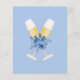 A Elegante Caligrafia Escreveu Algo Que O Chá de panela Azul Pensava Que Era Um Jogo Engraçado De Casamento Com Flores De Cores-De-Água. Do outro lado há um copo de champanhe com um buquê.