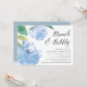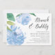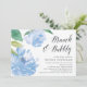 O convite para o brunch de chá de panela chic apresenta ilustrações de flores de pedras de aquarela em tons macios de azul, acentuadas com folhas verdes esmagadas. Personalize com seus detalhes de brunch bridal alinhados à direita, com "brunch & bubble" em um roteiro elegante de caligrafia. Cartões à volta de azul sólido empoeirado.