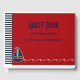 Livro Guest náutico para uma cabana por um lago ou mar. As palavras podem ser mudadas na frente. O design é um fundo vermelho, com uma borda listrada azul e branca, um barco de vela ilustrado e ondas. Obrigados à Hungryjpeg para alguns dos elementos do design.