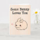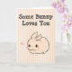 O coelho bonito das características dianteiras do cartão e diz que "algum coelho o ama" interior diz "muito, muito." e tem impressões cor-de-rosa pequenos do pé de coelho nos cantos.