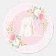 alguns adesivos de festa de aniversário de coelho com listras cor-de-rosa e floral