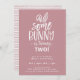 Um convite de aniversário bonito de "coelhinho" de rosa empoeirado. Tipografia branca com sotaque de ouvido coelho e padrão de suporte do estilo de basketweave desenhado à mão.