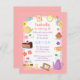 Convide seus convidados do partido a um tea party de aniversário no país das maravilhas com esta Alice bonito no convite de festas temático do país das maravilhas! Tem elementos para um tea party com coisas como bules e teacups, sobremesas, bolos e pastelarias. Sugestões que é um partido do país das maravilhas pode ser encontrado dos elementos familiares como uma garrafa com uma etiqueta "me bebe", o relógio de bolso do coelho branco, um cartão de jogo do ás, a parte superior do hatter que tem o texto "ao estilo de 10/6", o bolo com o glacé "come-me" e a chave que Alice encontrou. O fundo cor-de-rosa com pontos arranjou no quadrados diagonais. Colorido e adorável, isto convida é grande para meninas do aniversário que ama a história Alice no país das maravilhas!