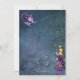 Este convite de casamento de Alice no País das Maravilhas apresenta o famoso gato Cheshire e o coelho branco no papel digital bordado azul escuro antigo. Alice, a rainha e o bule são apresentados na parte de trás do cartão. Personalize este convite para se adequar ao seu.