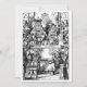 Ilustração vintage vitoriana em preto e branco de contos de fadas e rimas infantis imagem do livro de Sir John Tenniel em Alice's Adventures in Wonderland de Lewis Carroll, frontispício de 1865. Alice é retratada como uma menina logicamente peculiar, às vezes até pedante. Ela tem sete anos de idade, mas age como se fosse muito mais velha. Esta imagem é a cena do julgamento com o Rei e a Rainha de Copas reais.