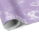 Uma Alice bonita na colagem do país das maravilhas, com Alice, o gato de Cheshire, o coelho branco, o Hatter louco, o copo de chá do vintage, o bule, e o relógio de bolso, no branco é ajustada em um roxo obscuro da lavanda para fazer este papel de envolvimento temático literário bonito. Muito mais Alice em artigos do país das maravilhas está disponível em minha loja de Zazzle.
