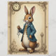 Admita uma sensação de capricho clássico com este delicioso trabalho que apresenta o icônico Coelho de Alice no País das Maravilhas. Mostra um retrato charmoso do Coelho num terno azul, segurando o seu relógio de bolso contra um fundo pergaminho antigo com uma borda decorativa de relógios. Com possibilidades criativas ilimitadas, este artigo é perfeito para convites, reservas de lixo, revistas de lixo e outros projetos criativos memoráveis. Este documento de alta qualidade oferece um visual profissional nítido para qualquer projeto grande ou pequeno. A sua versatilidade faz dela uma adição perfeita para o artesanato, a papelaria ou simplesmente acrescentando um toque nostálgico às suas criações.