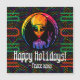 Magnetos de natal de gravata de alienígena personalizada! Você pode "personalizar" a saudação, ou mantê-la como está. Apresenta alienígena com sinal de paz, moldura circular de coloração de gravata, ano nas laterais, fundo com padrão e legal tipografia de alienígena.
