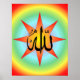 A caligrafia árabe para "Alá" em uma mandala de explosão solar.