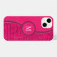 Este único design de luxo chic apresenta texturas de pele escura e alligadora, falsas em couro preto, unidas em formas elegantes e curvas, com uma fochsia magenta rosa-quente circular e uma etiqueta monográfica de vinho branco rosa-escuro e um monograma branco elegante e personalizável no centro. Você pode personalizar este item alterando o monograma no modelo do produto.