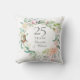 Apresentando uma delicada camada floral de aquarela, este travesseiro de festas de 25 botânico chic pode ser personalizado com sua informação especial de aniversário em elegante texto prateado. Projetado por Thisnotme©