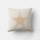 Belo travesseiro decorativo de dois lados com estrelas-do-mar sobre bege, creme, cor pastel, fundo marrom-claro de um lado e muitos sobre fundo de cor do marinho do outro lado.